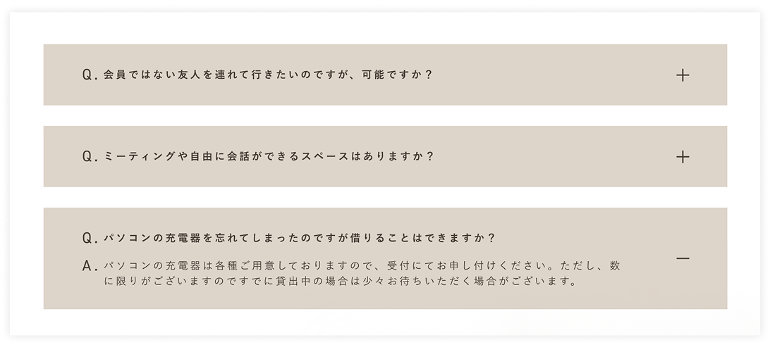 利用者がここで過ごすイメージを持てるよう、写真やデザイン、余白などでサイト全体に落ち着きと安心感・信頼感を伝えつつ、活気やコミュニティ性も感じられるような情報設計にする。