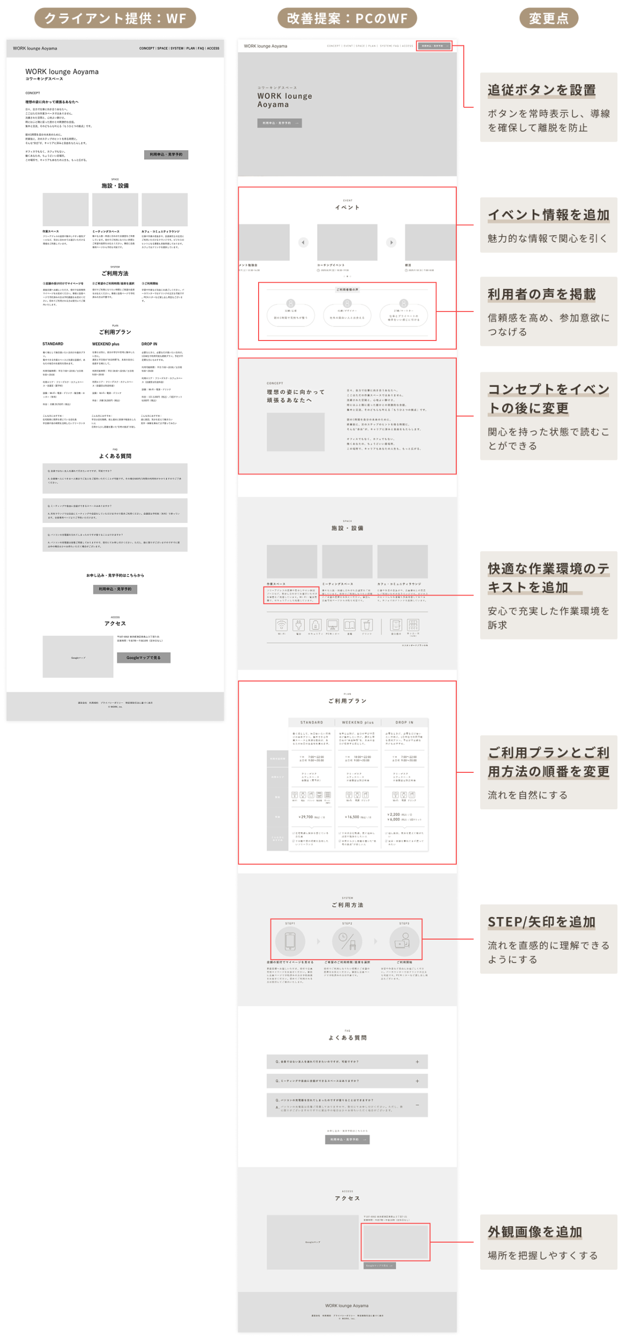 - ワイヤーフレーム(PC:改善提案、SP:作成)