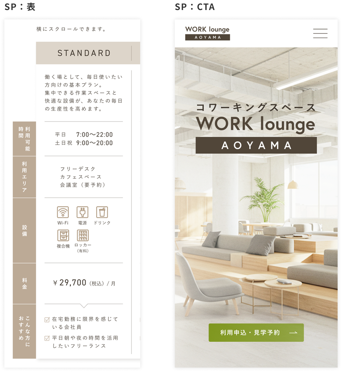 - SPでは表を横スクロールで閲覧する仕様に切り替え