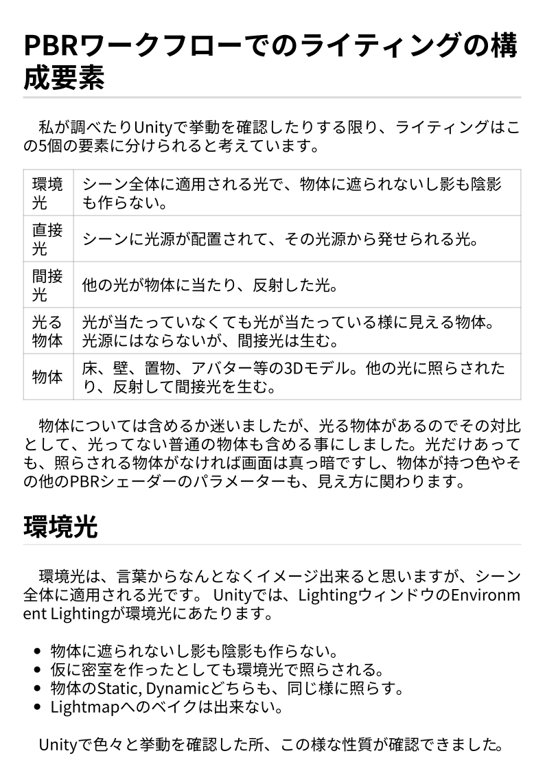 VRChatに限った話ではないけど、VRChatのワールドを作る為に必要になるであろうUnityのライティングについて、調べてまとめたものです。
