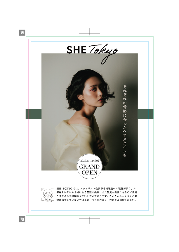 - 表はビジュアル重視で美容室の雰囲気を全面に押し出すことで惹きつけ、裏は料金や住所などの詳細がわかるようにしました。