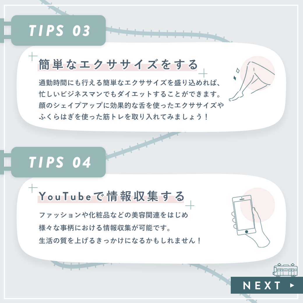 - 電車orバスの通勤時間は寝てばかりで無駄にしてしまっている自覚はある、という女性
