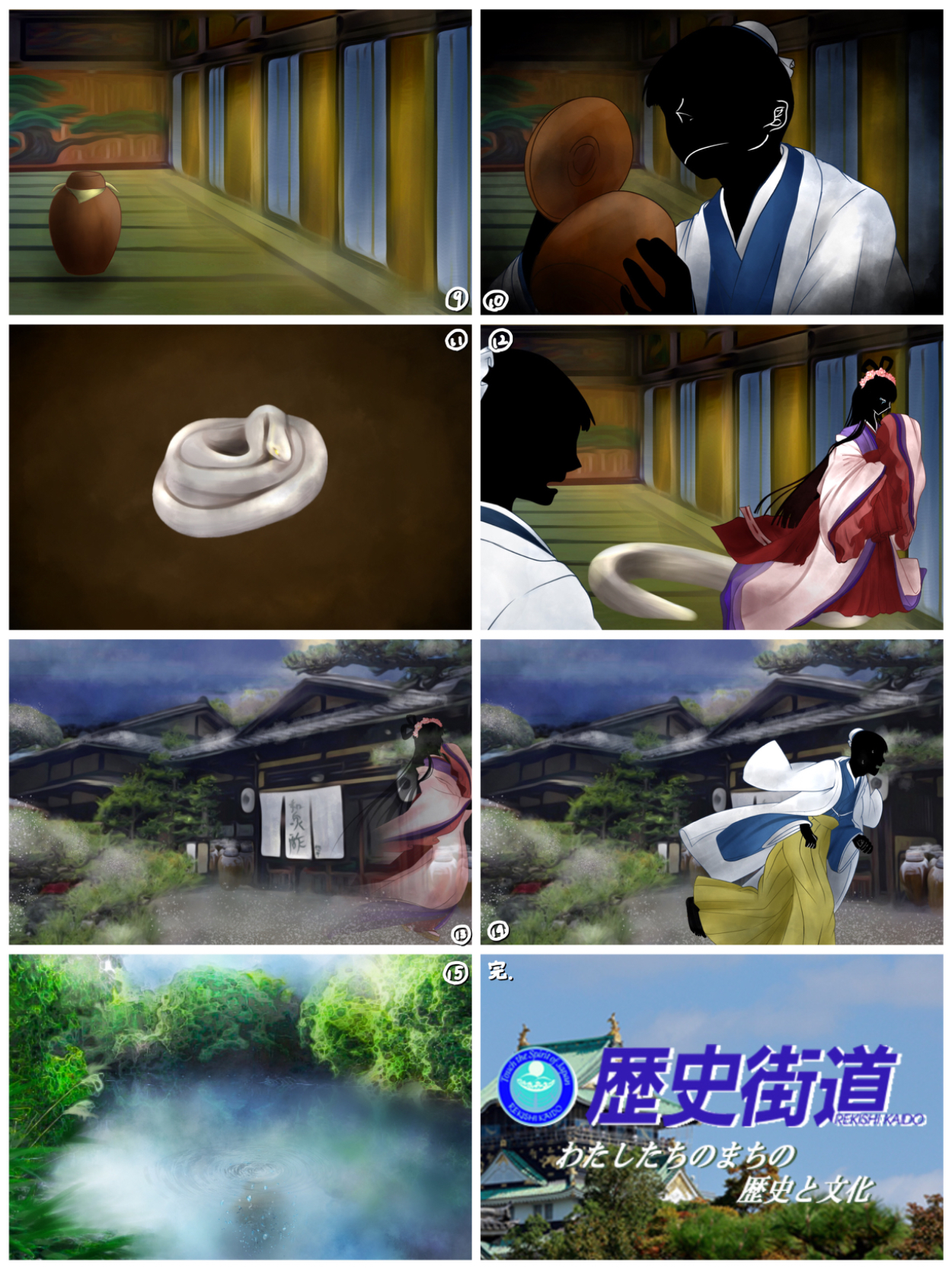 実際に今もなお存在する池で、岸和田の歴史資料や実際の出来事などに基づいて、解明していく番組内容で、その中の基になる酢壺池伝説を紙芝居形式で描かせてもらいました。