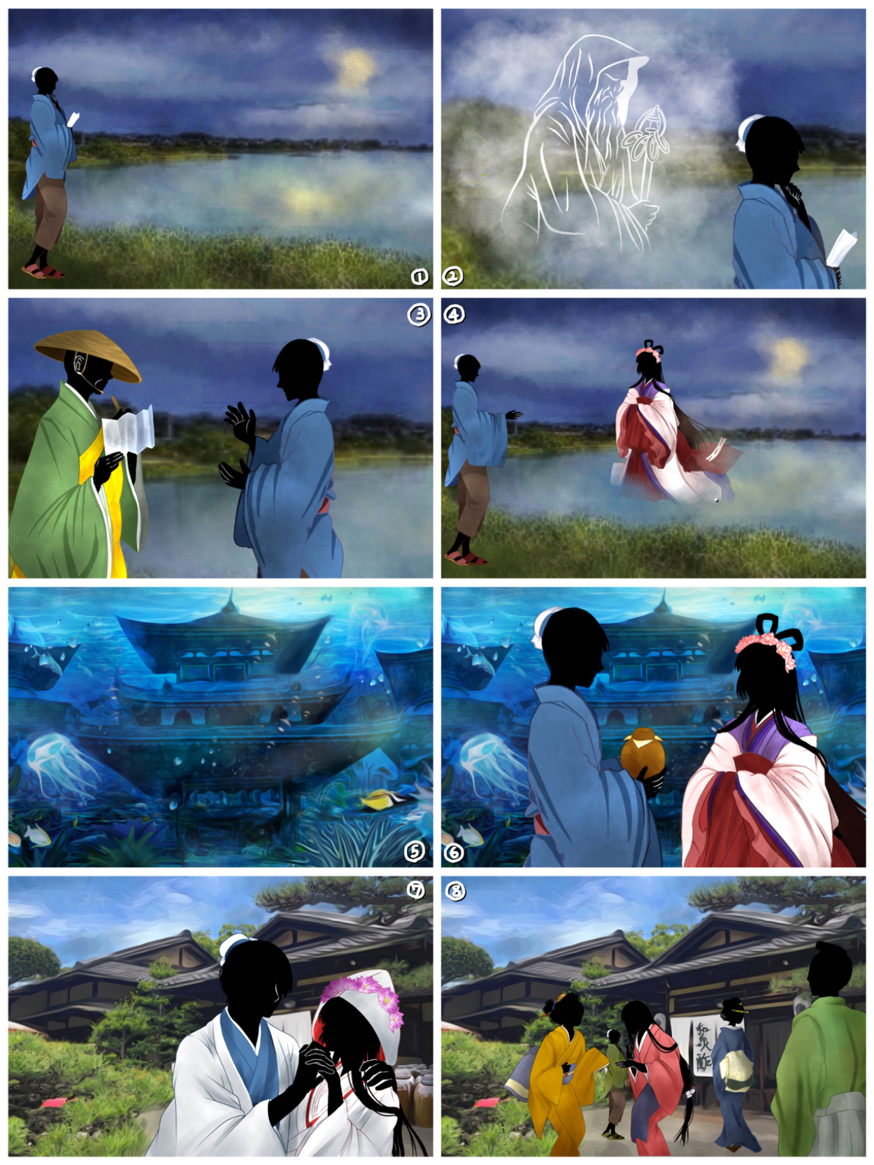 なんだか浦島太郎と鶴の恩返しを組み合わせたような内容で不思議面白い感じで、描いていて楽しかったです!