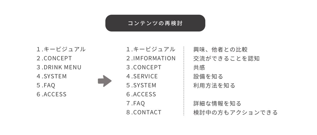 ドリンクメニューは情報の優先度が低いので、サービスの中に小さく含めた。