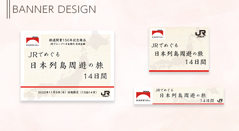 - JRグループ様と日本旅行様共同企画である、鉄道開局150年記念商品旅行のバナー。