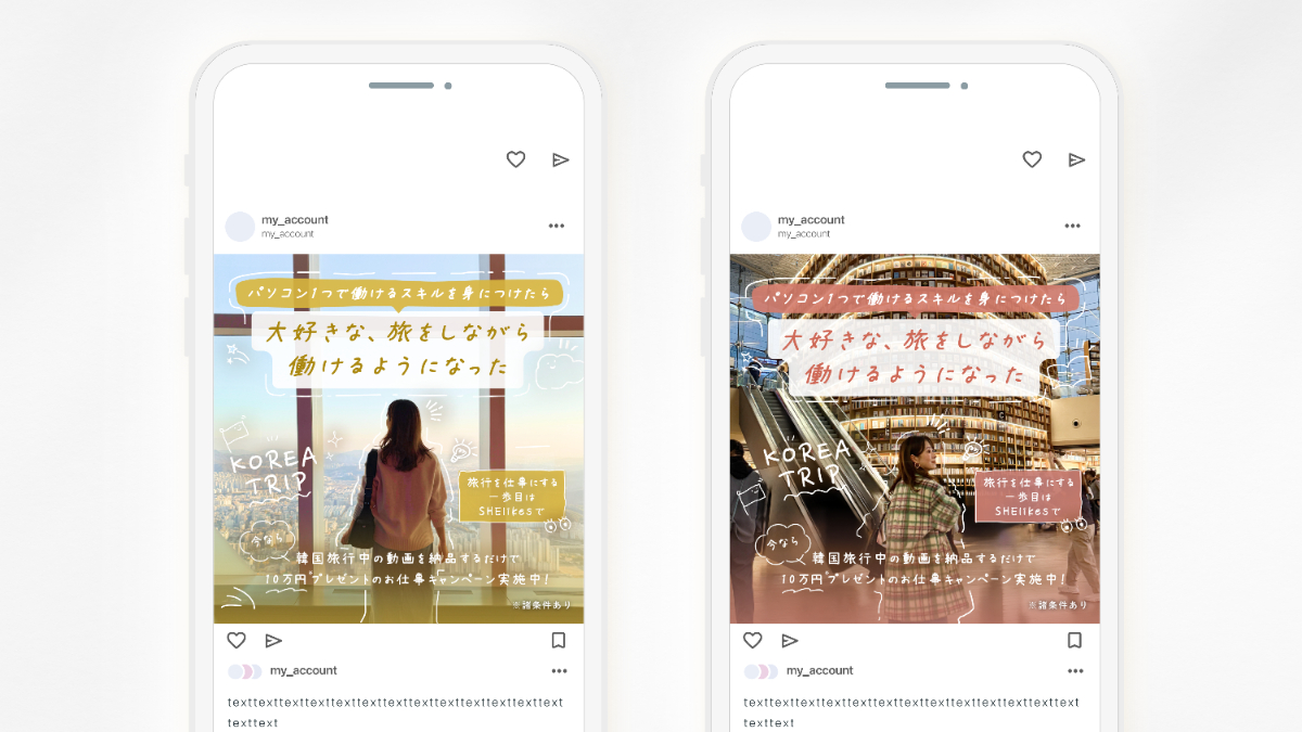 SHElikesの世界観をより魅力的に伝えるため、手書き風の文字やあしらいを取り入れ、温かみと親しみやすさを表現しました。