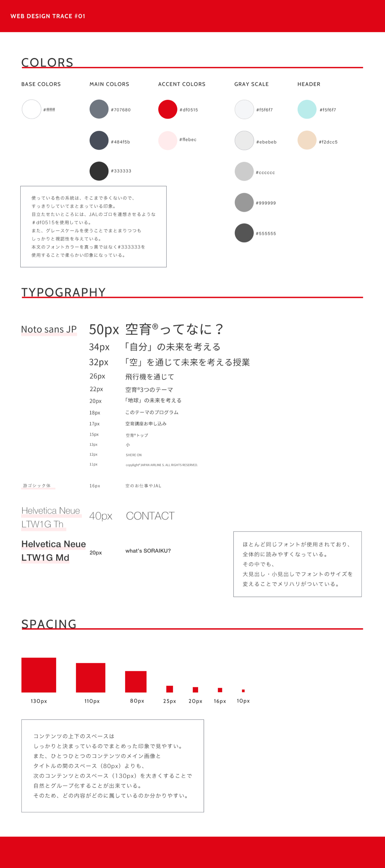 フォントや余白などには規則性があり、サイトに訪れた人が見やすいように工夫されている。また、大きなセクション、小さなセクションで余白の大きさを変えることで自然とグループ化が計れる。