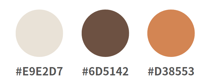 ベースカラー(#E9E2D7):メインカラー(#6D5142):アクセントカラー(#D38553)