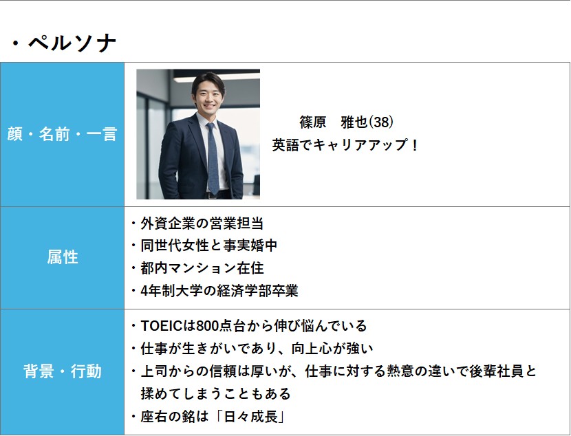 また、モデルにはターゲット層やペルソナに近いスーツの男性を選び、共感性を高めている。