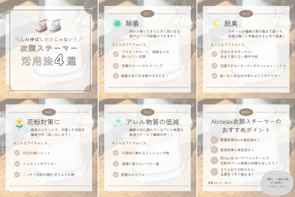 自社商品の衣類スチーマーをより活用するために、しわ伸ばしだけではない活用方法を