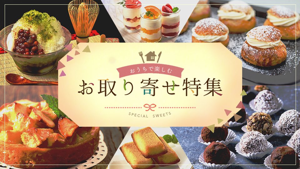 ◼︎配布素材 コピー『おうちで楽しむお取り寄せ特集』、6つのスイーツの写真
