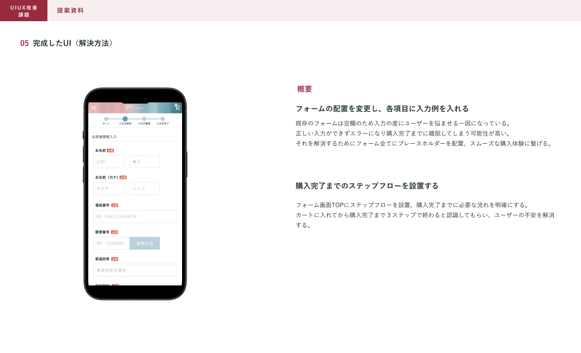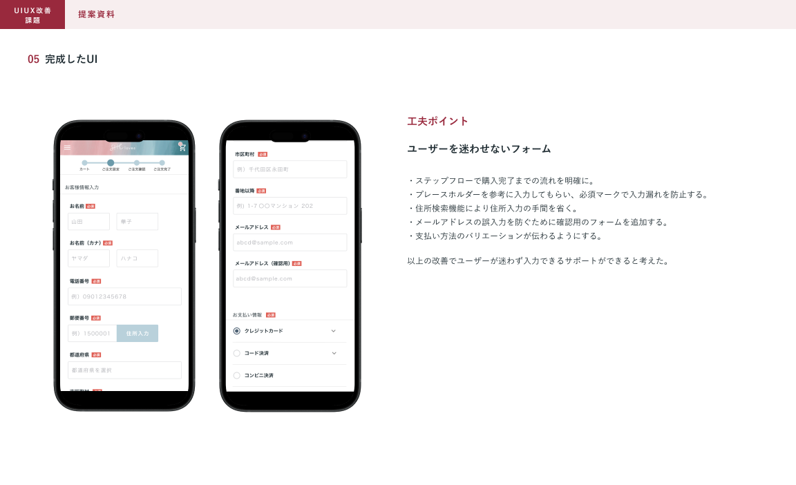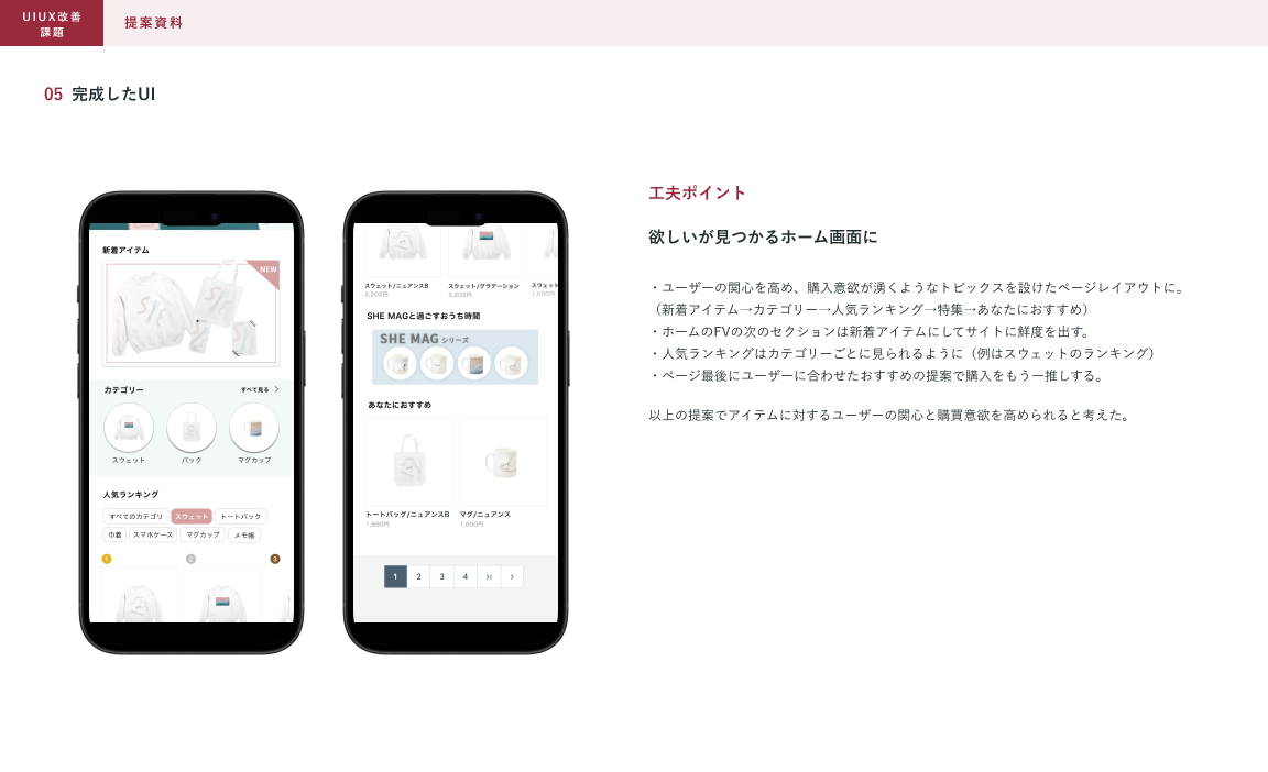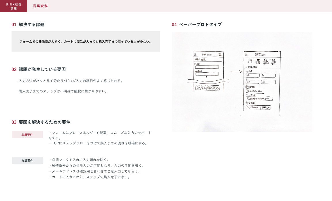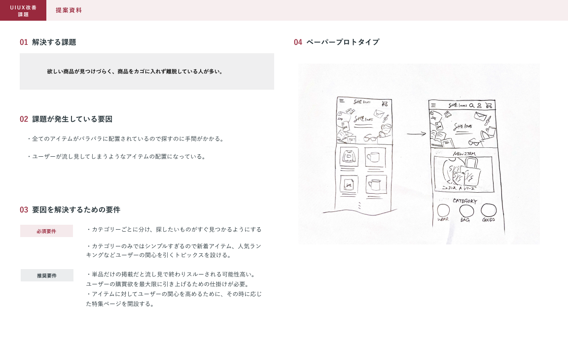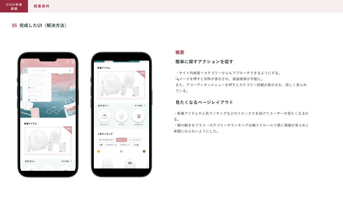 制作範囲:架空のECサイトのUIの改善、提案資料の作成