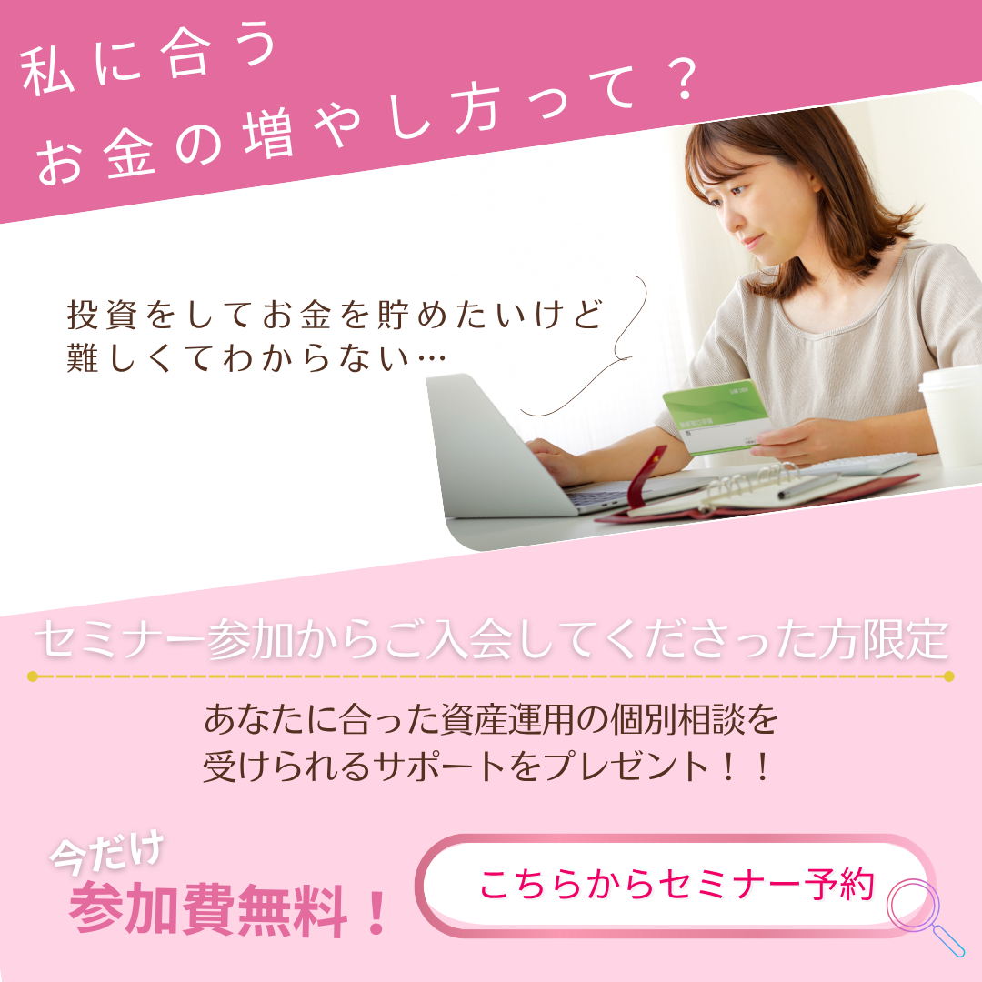 ・セミナー参加から入会してくださった方限定でファイナンシャルプランナーとあなたに合った資産運用の個別相談を受けられるサポートをプレゼント!