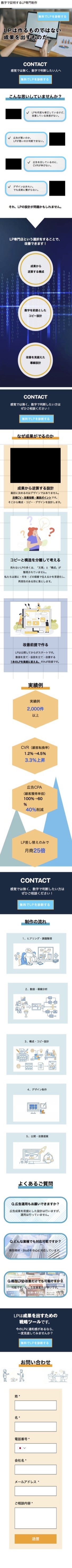 CTAを適度に繰り返し配置しつつ、セクションごとに背景を替えるなどの工夫をして見やすさを追求しました。
