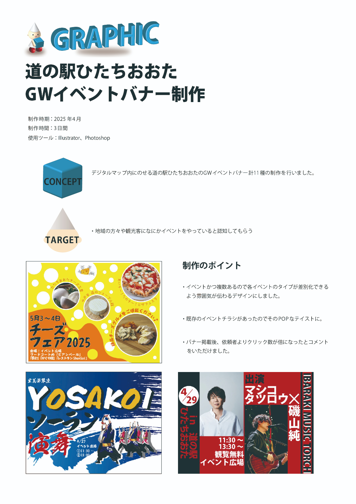 道の駅ひたちおおたのGWイベントバナーを制作しました。