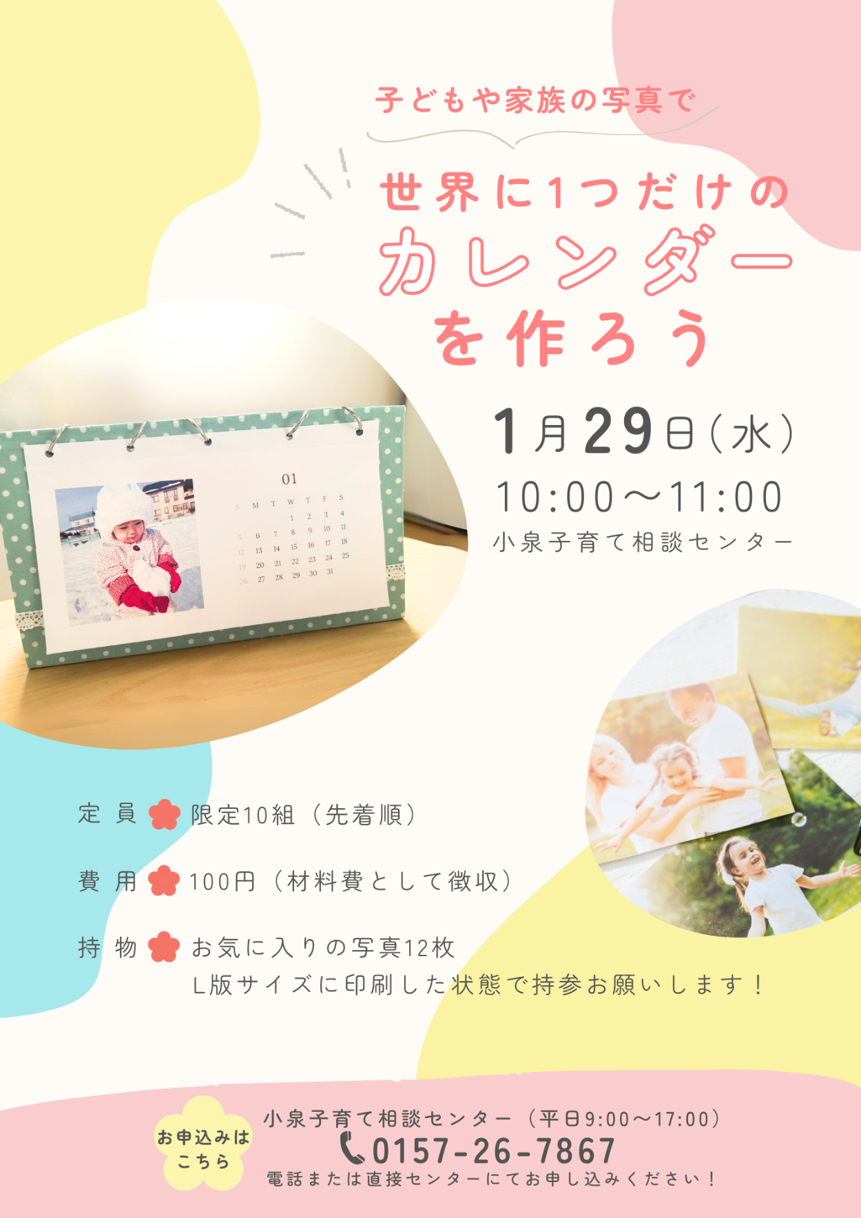 ・子育てセンターの雰囲気に合うように、背景のデザインはやわらかい色や丸みのある