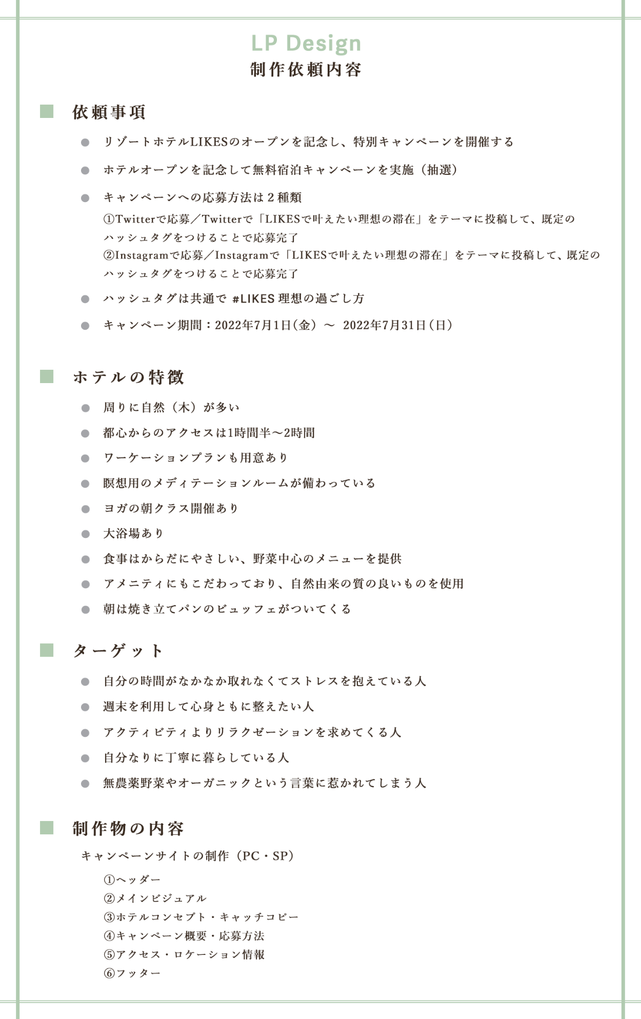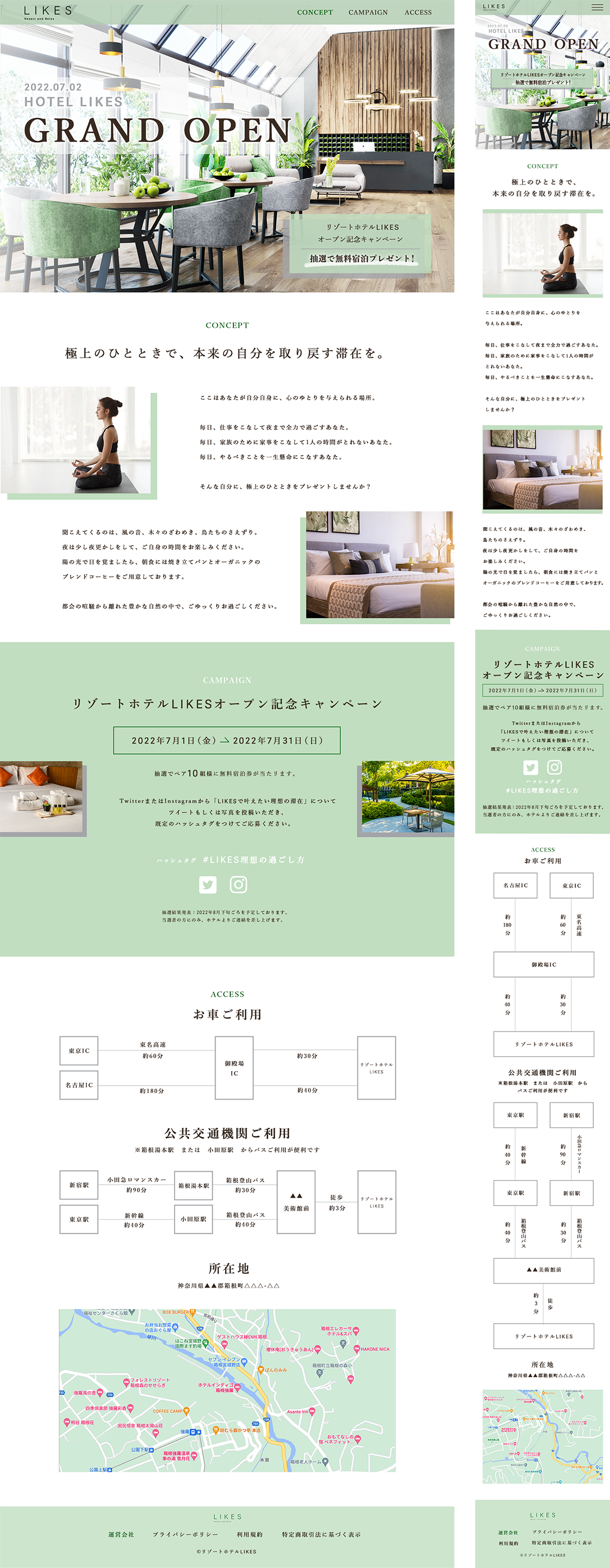 【課題制作】リゾートホテルLIKESオープン記念キャンペーンサイト(デザインカンプPC・SP)