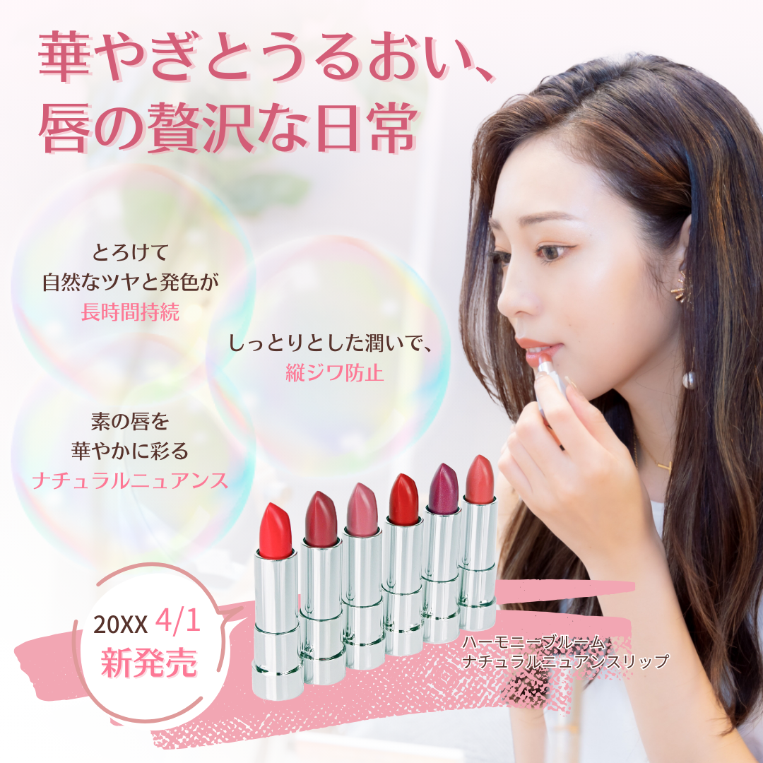 新発売のリップをLP誘導用のインスタグラムバナー広告を作成しました。