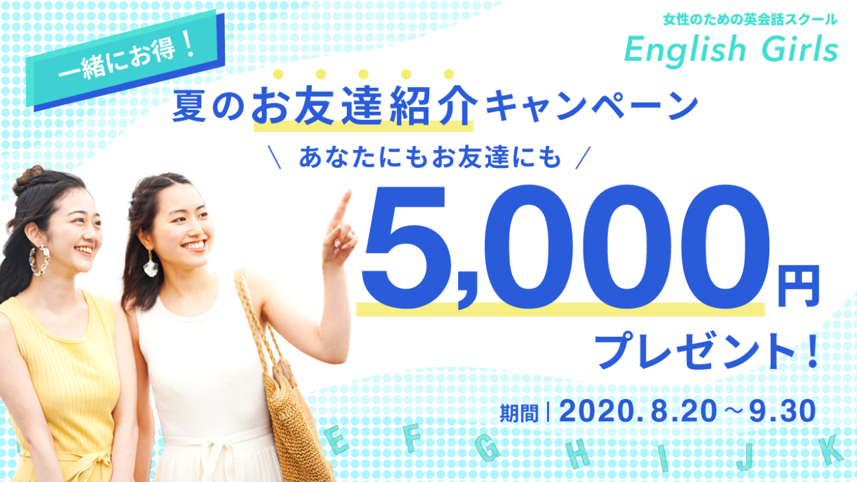 夏のキャンペーンであることが伝わるよう、鮮やかなブルー、ライトブルー、イエロー、エメラルドグリーンを用いました。背景のニュアンスは、夏の明るい海と空をイメージしました。目立たせたいブルーのテキスト(「5,000円プレゼント!」の部分)を邪魔しないよう、背景のあしらいの不透明度を下げ、控えめかつ爽やかで優しい雰囲気になるよう工夫しました。
