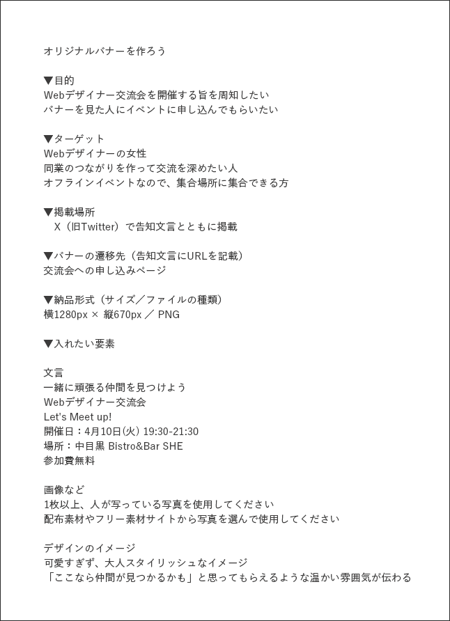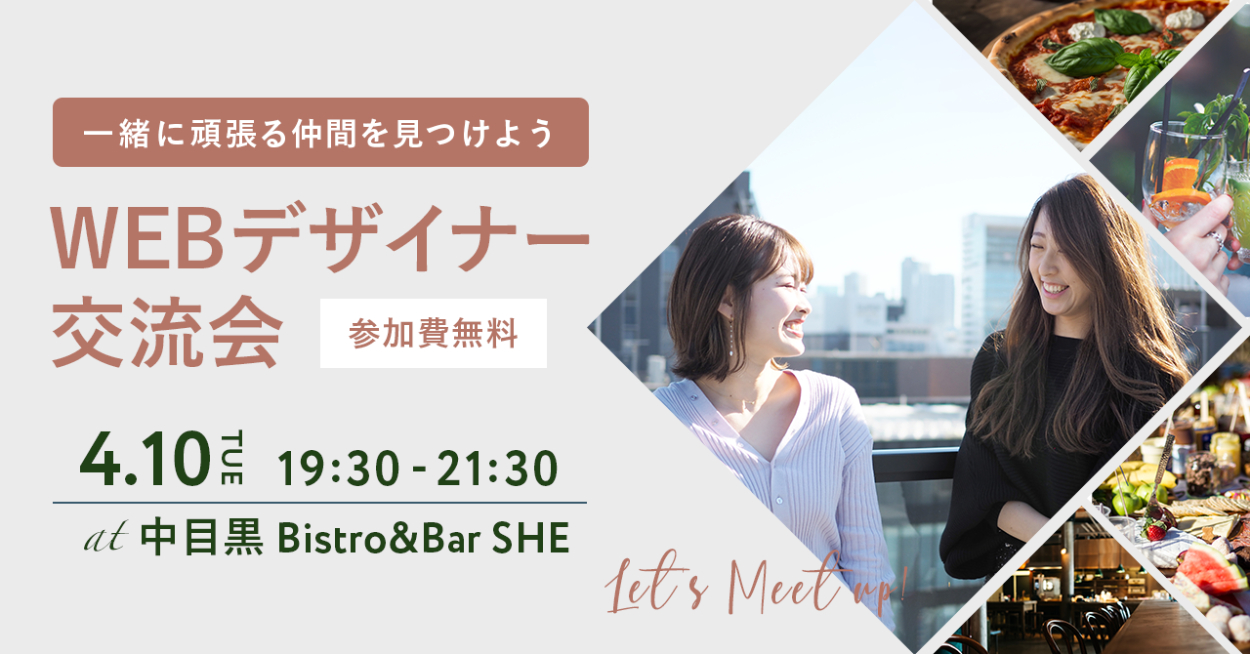 ・見出しである「WEBデザイナー交流会」は一番大きく目立つようにし、その次に日付や場所が目に入る流れにしました。