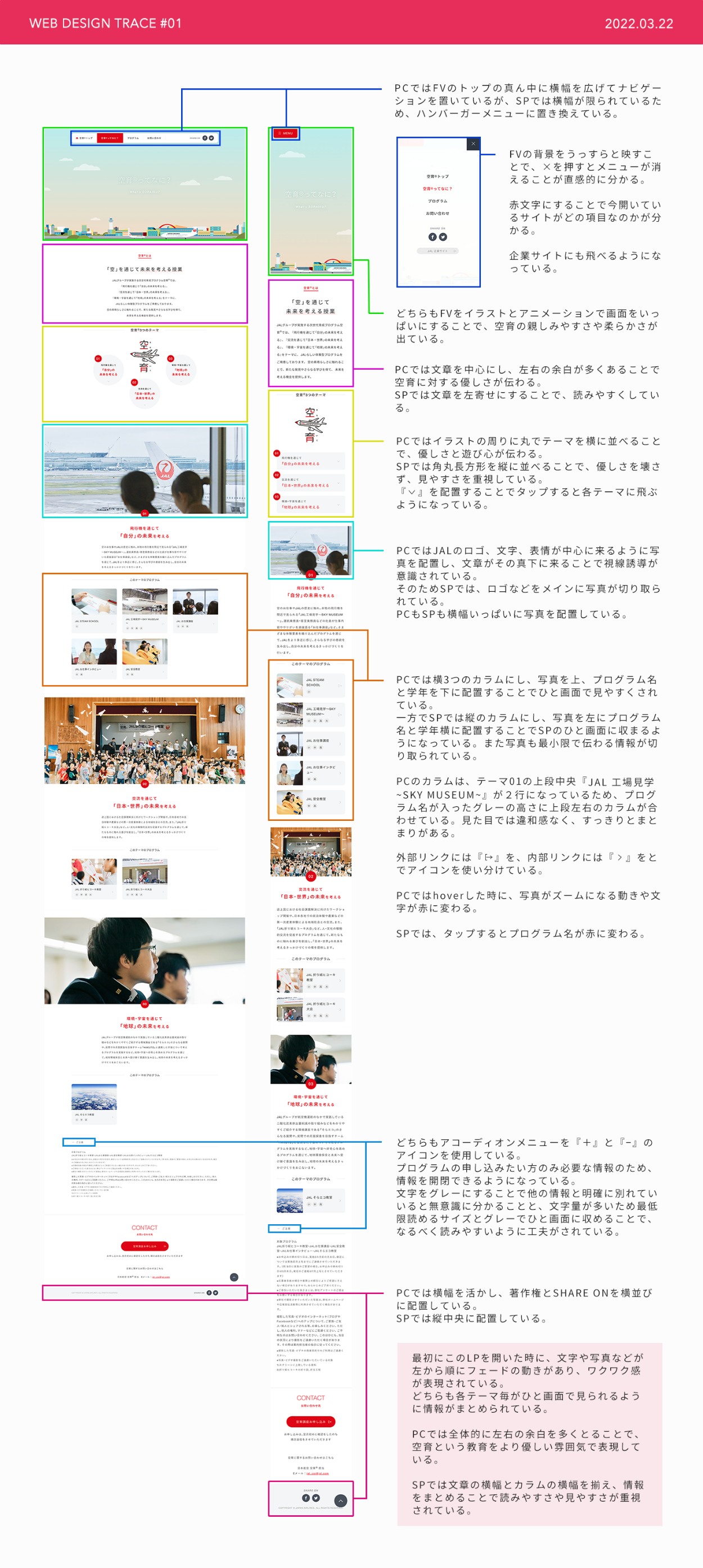 ・スタイルガイド作成や、PCとSPで異なるレイアウトの分析ではじっくり観察と考察を繰り返し、デザインを言語化しました。