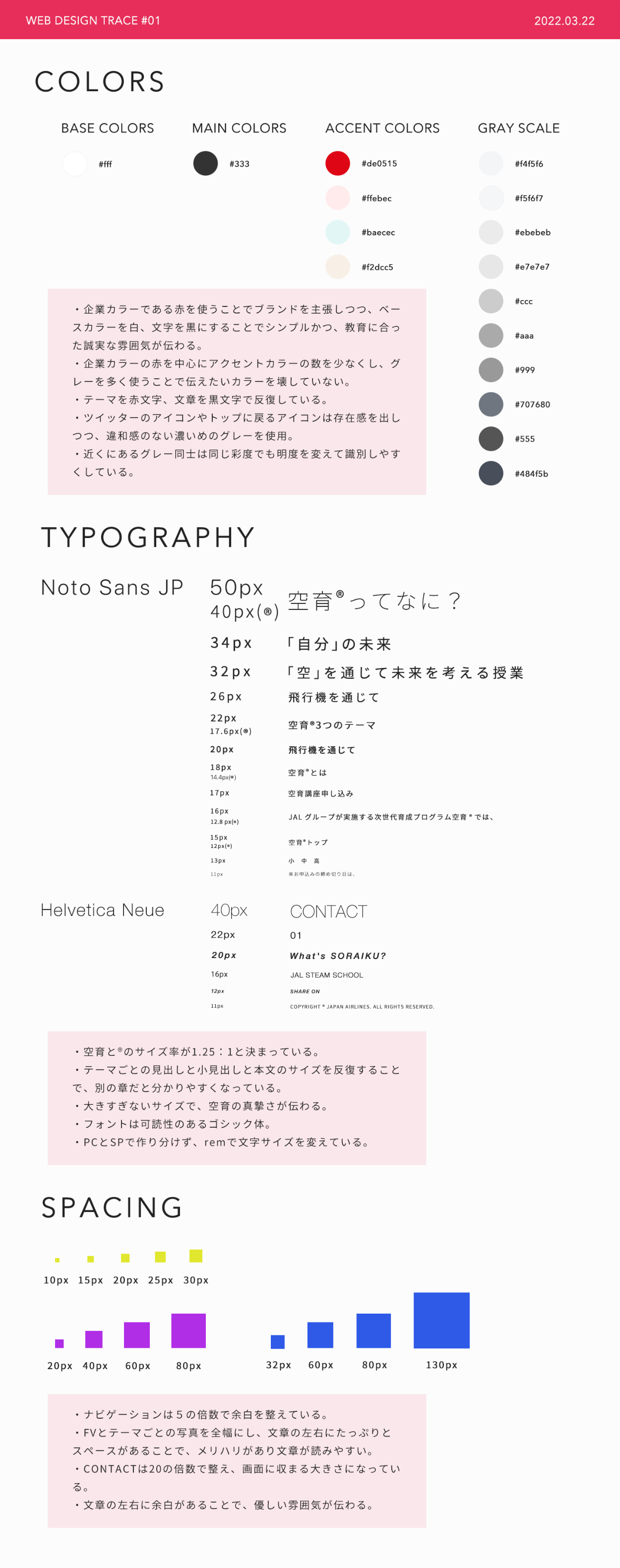SHElikes MULTI CREATOR COURSEの課題で、Webページのトレースとスタイルガイドの作成、PCとSPのレイアウト分析を行いました。🗓 2022/4