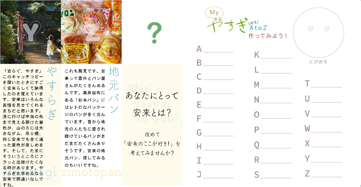Zまでのキーワードを紹介したあと、最後に読者自身でもAtoZを考えるワークページを用意した。冊子を通してインプットとアウトプットを同時にできるようなデザインを意識した。