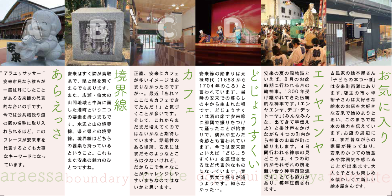 大学時代に卒業研究の一環で、地元(島根県安来市)の地域冊子を制作しました。 企画から取材、入稿まで全て1人でおこない、地元への想いがたくさん詰まった作品です。