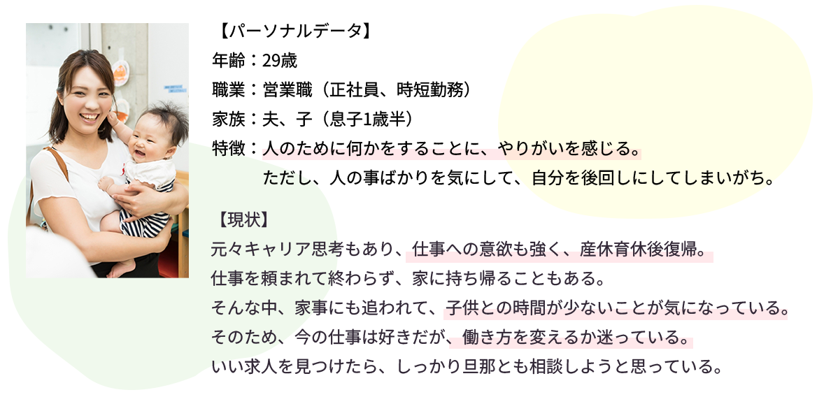 設定したペルソナから、どのようなユーザーストーリーが描けるか考察しました。