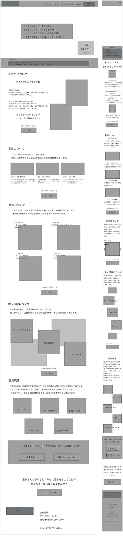 検討してきた内容とクライアントのターゲットやコンセプトなどを踏まえて、以下のワイヤーフレームを作成しました。