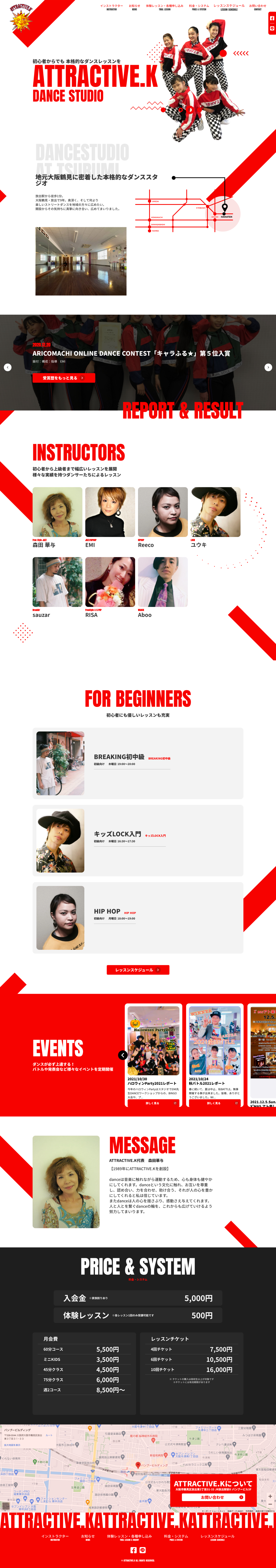 【制作実績】ダンススタジオATTRACTIVE.K様HP制作 ナカヤマノア webデザイナー OVERVIEW ダンススタジオATTRACTIVE.K様のHP制作を行いました。STUDIOで作成しております。 YEAR 2021