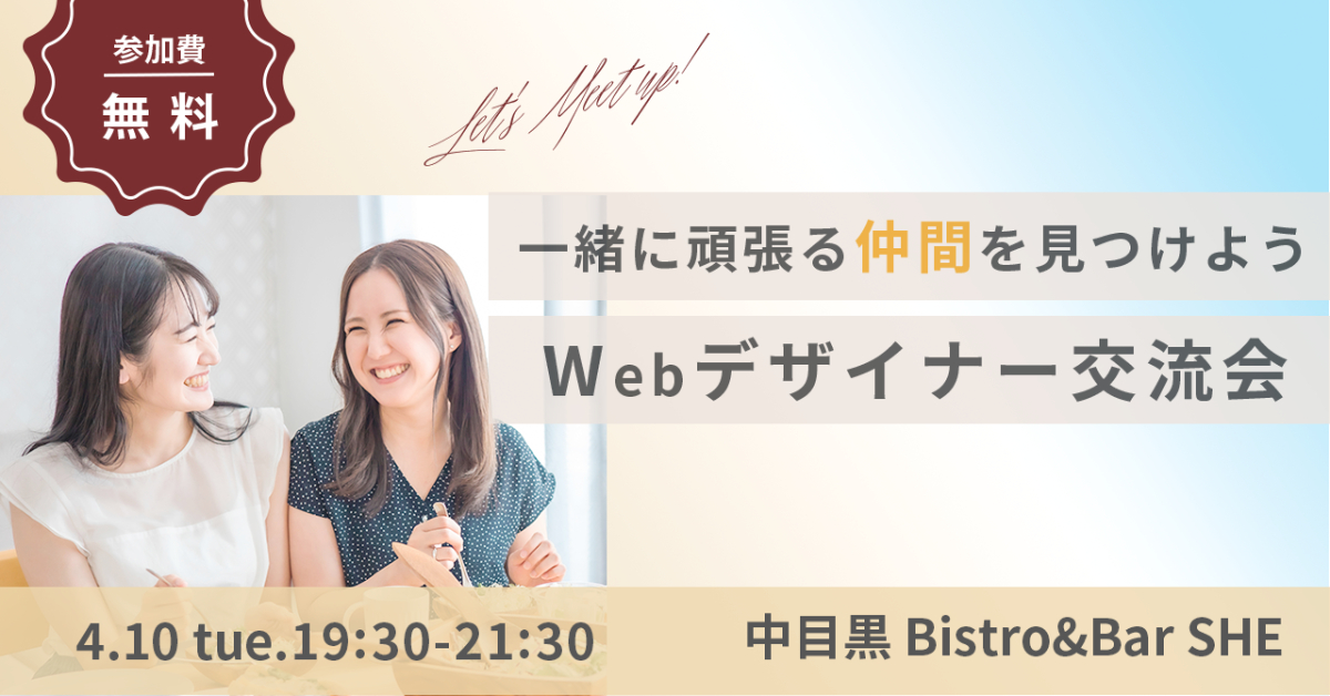 SHElikesの練習課題で作成いたしました。 Xで告知文言とともに載せるバナーとして想定されております。 交流会名、日時等、女性が交流する写真を載せることは決まっておりました。