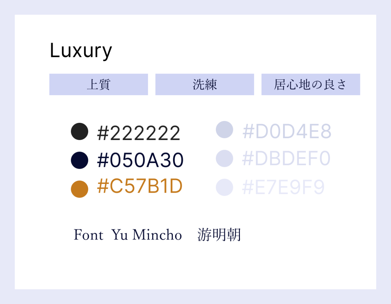 「上質な環境を大切にしている」「インテリアやデザインが好き」という情報に注目し、配色はネイビー、ゴールドで高級感、フォントは落ち着いた雰囲気が出るようポイントで明朝体を使用。