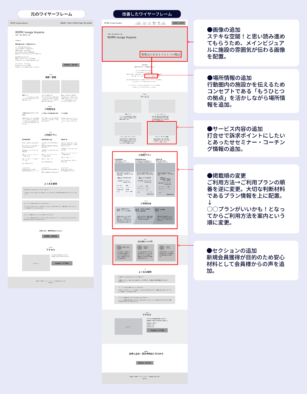 ※クライアントから提供されたワイヤーフレームの改善を行っています。