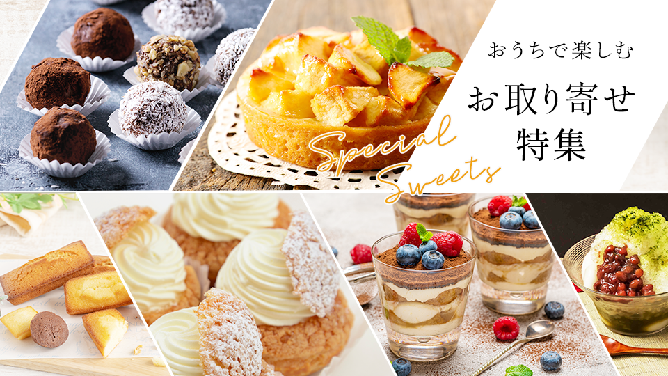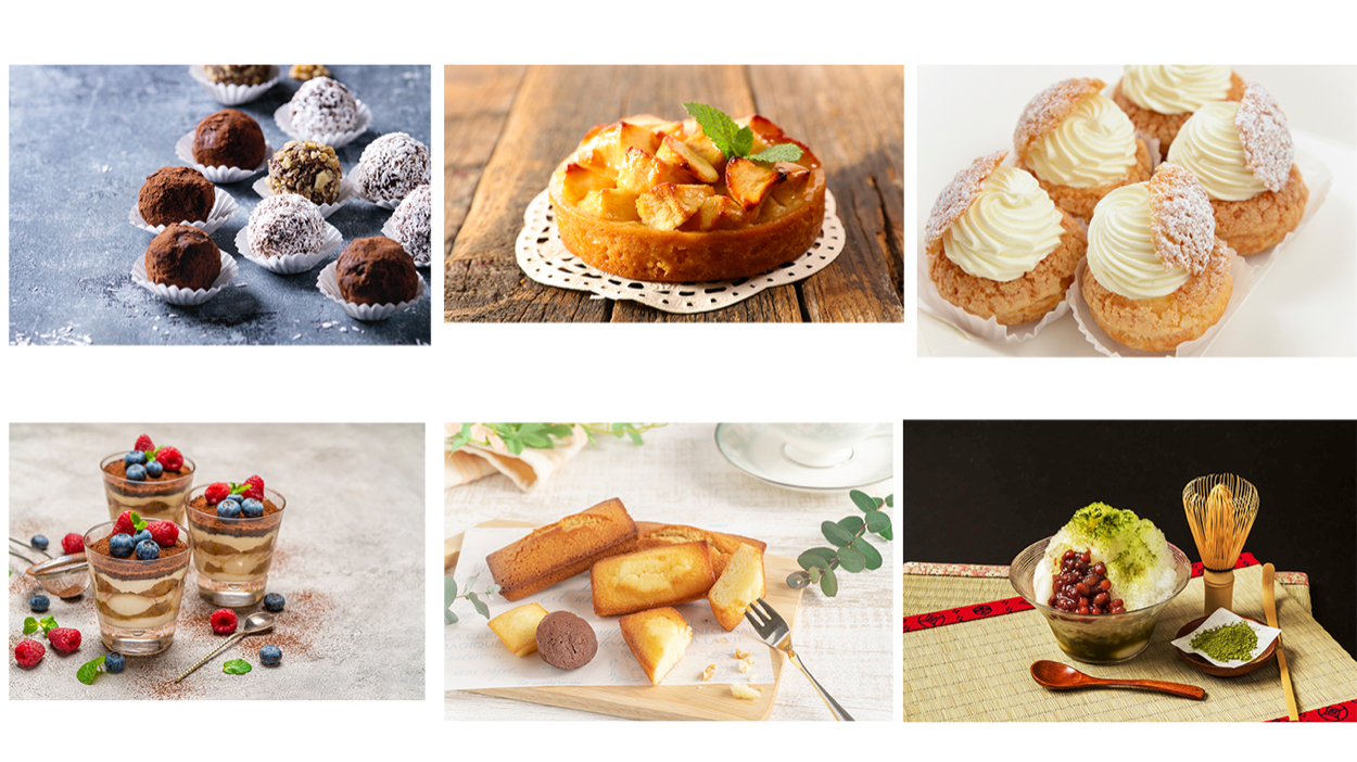 全てのスイーツが美味しそうに見えるレイアウトにし、色補正を行いました。フォントでは特別感を表しました。