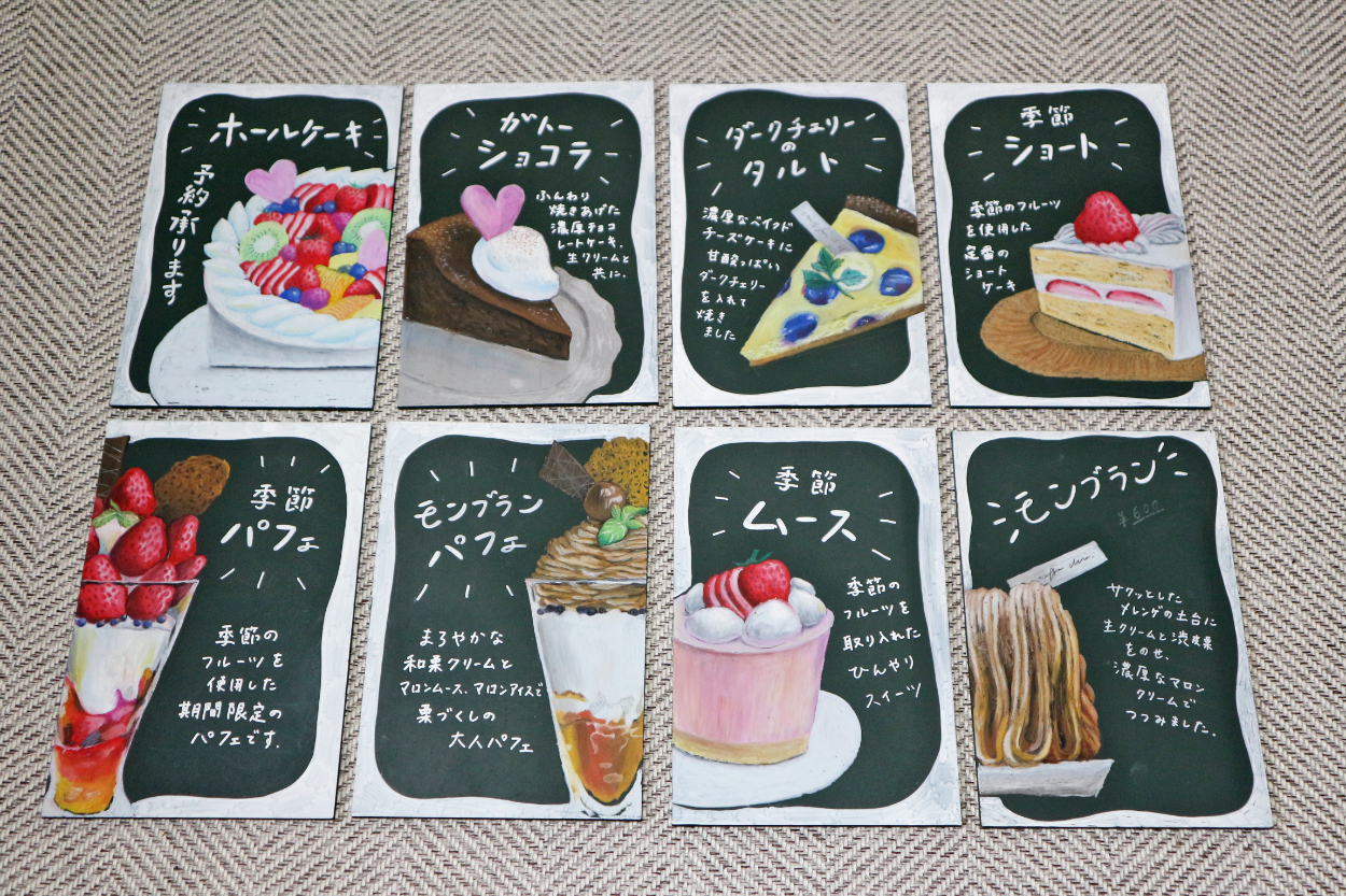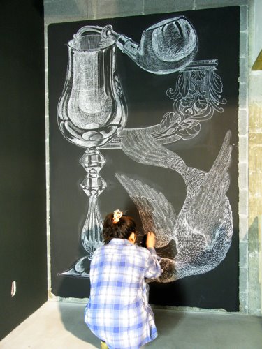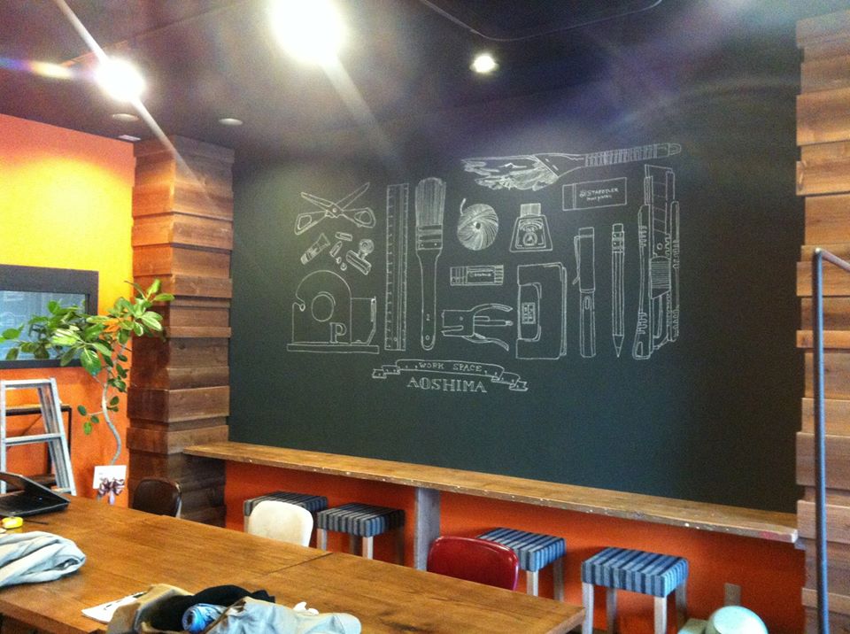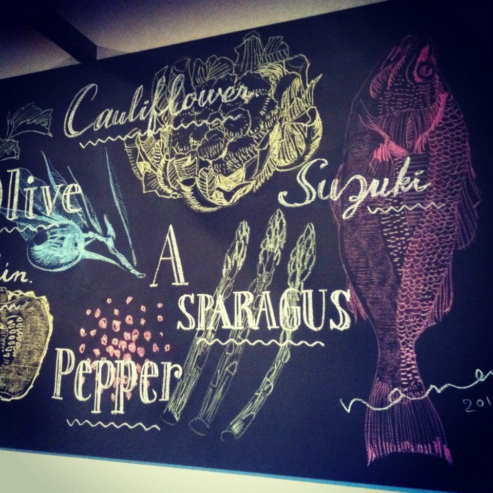 チョークやオイルチョーク等で描いた手描きの看板やウォールアートです。