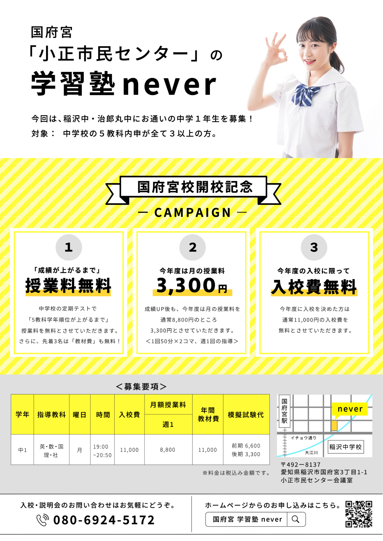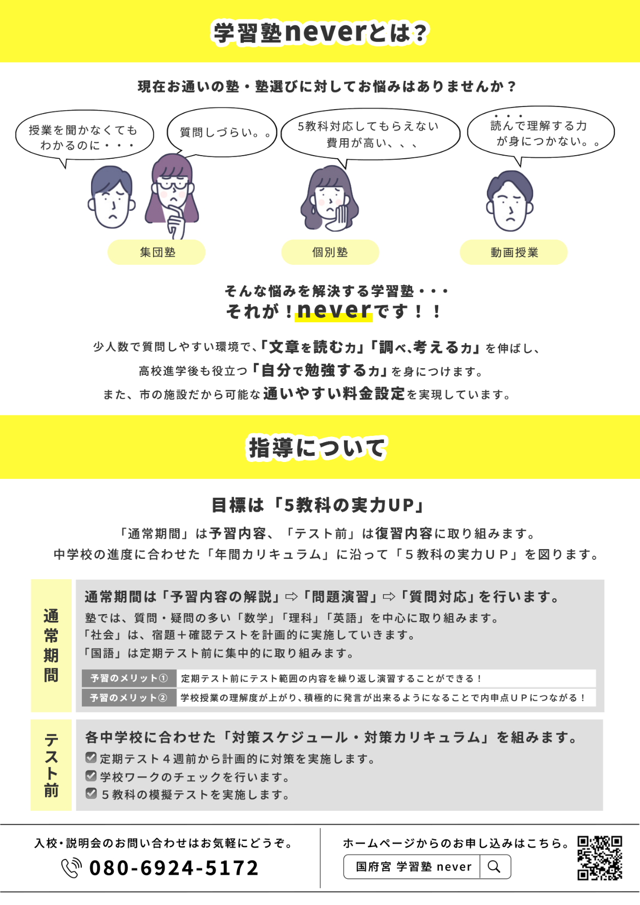学習塾neverとは、指導について、キャンペーン情報、募集対象、募集要項