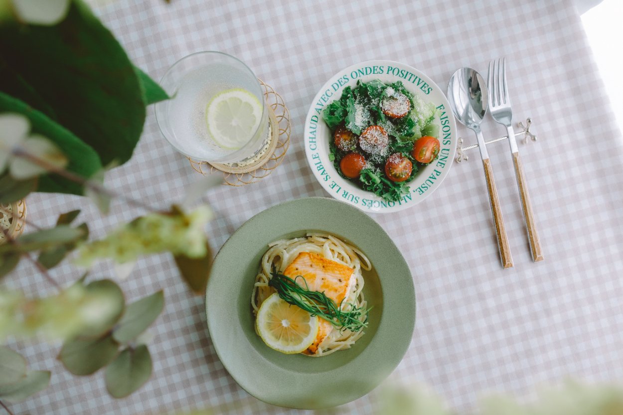 【自主制作】物撮り(フード) ミイ webデザイナー/フォトグラファー/動画クリエイター OVERVIEW レストランやカフェをイメージした物撮りです。 【ポイント】・フードだけではなく全体の雰囲気が伝わるように物の配置と構図を考えました。・前景に花を設置することで奥行きを演出しました。・自然光の中で撮影することでナチュラルな空気感を演出しました。