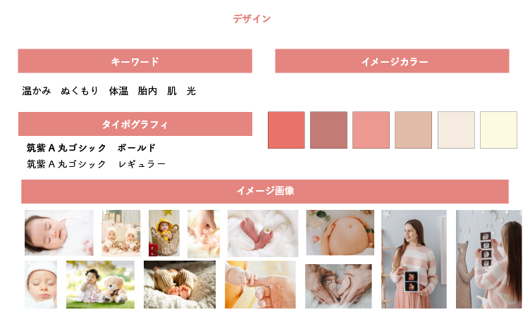ベビー事業を運営する企業様の「らしさ」を表すために、要素の角を無くして柔らかさを表現するデザインを制作しました。