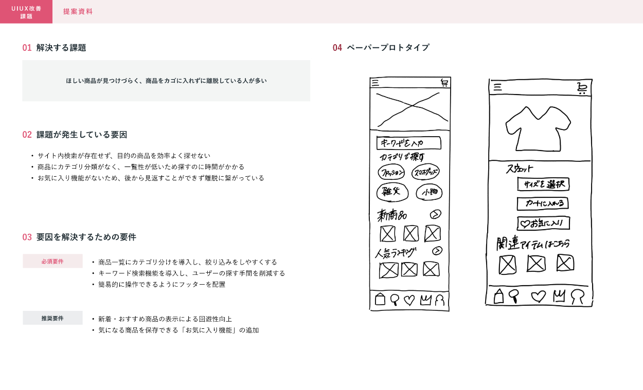 課題2:ほしい商品が見つけづらく、商品をカゴに入れずに離脱している人が多い