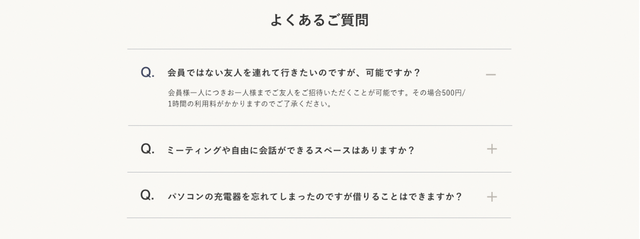 よくある質問を載せることで利用する前のユーザーの疑問や不安を払拭します。