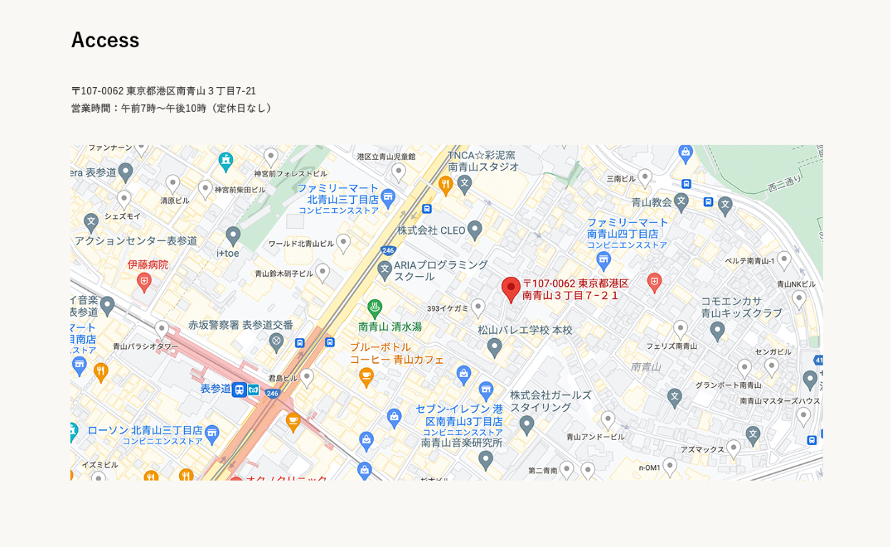 ユーザーが訪れる際に参考になるように地図と住所を載せました。