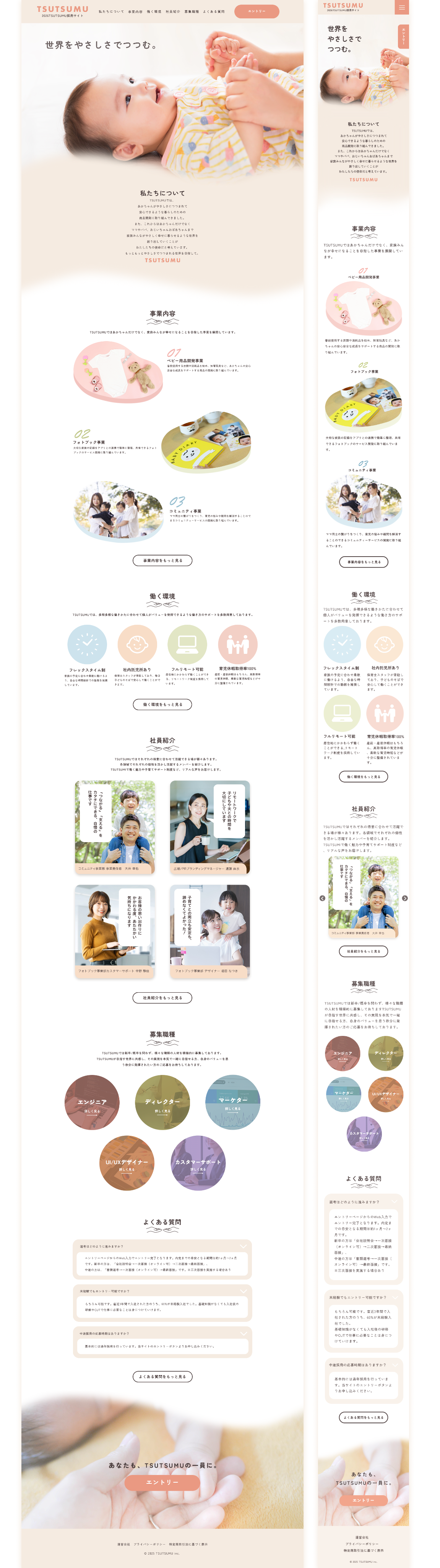 ベビー用品企業採用サイト制作 (PC/SPデザイン・実装)