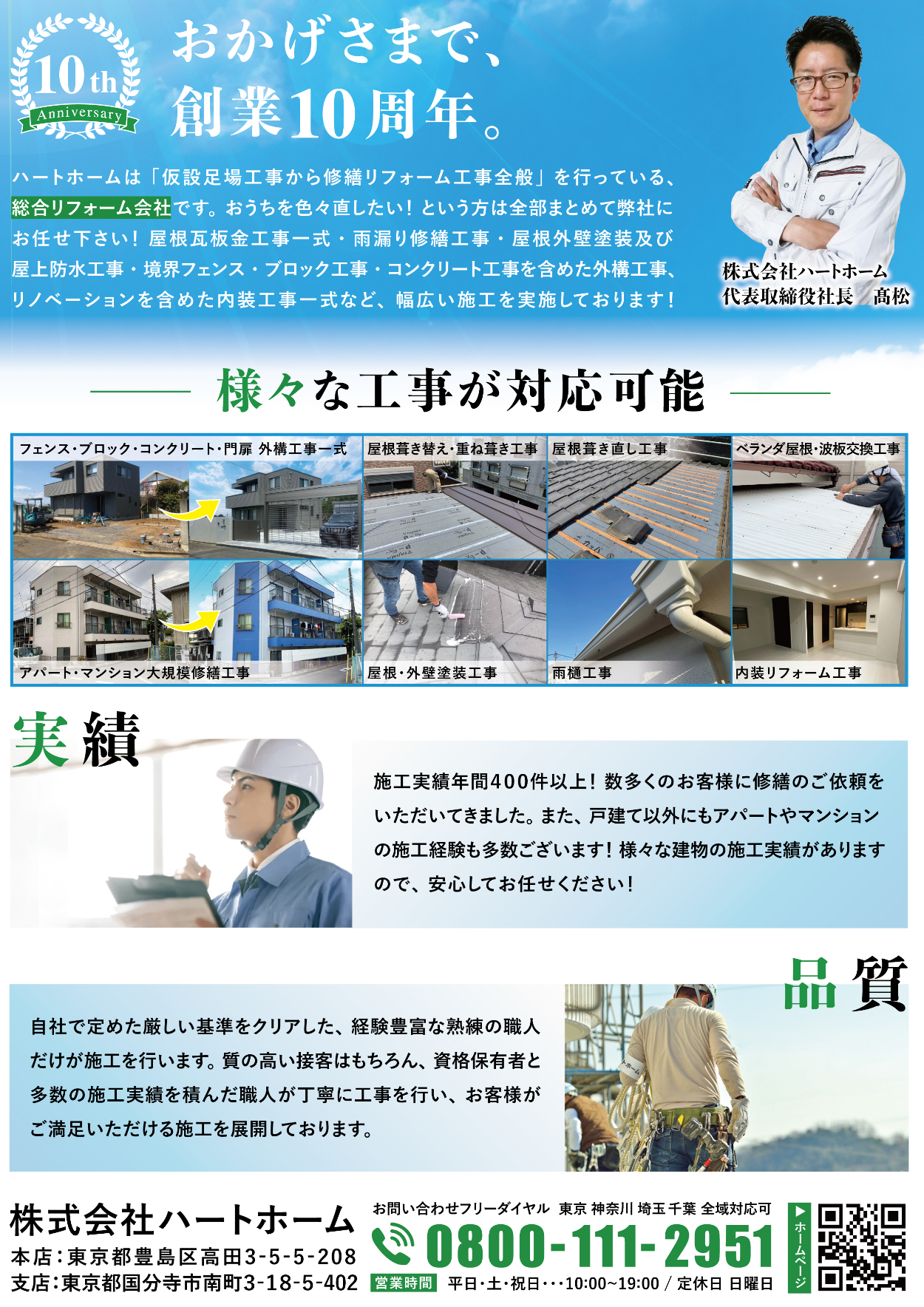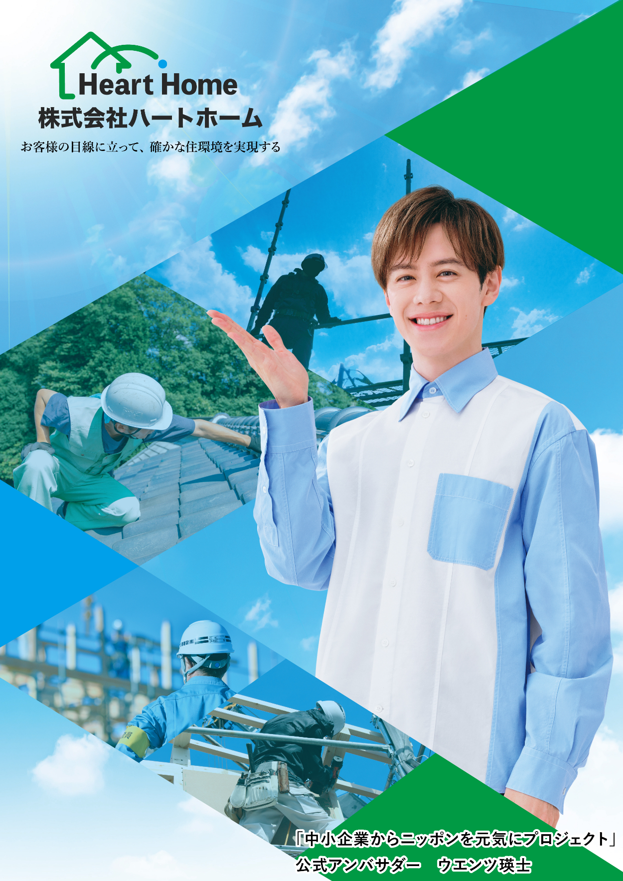 パンフレットデザイン Y I Inhouse Designer OVERVIEW ウエンツ瑛士さんを起用した、パンフレットデザインを担当しました。会社のイメージカラー緑×青を使用して、総合リフォーム会社という事をアピールした内容にしました。 オモテウラ