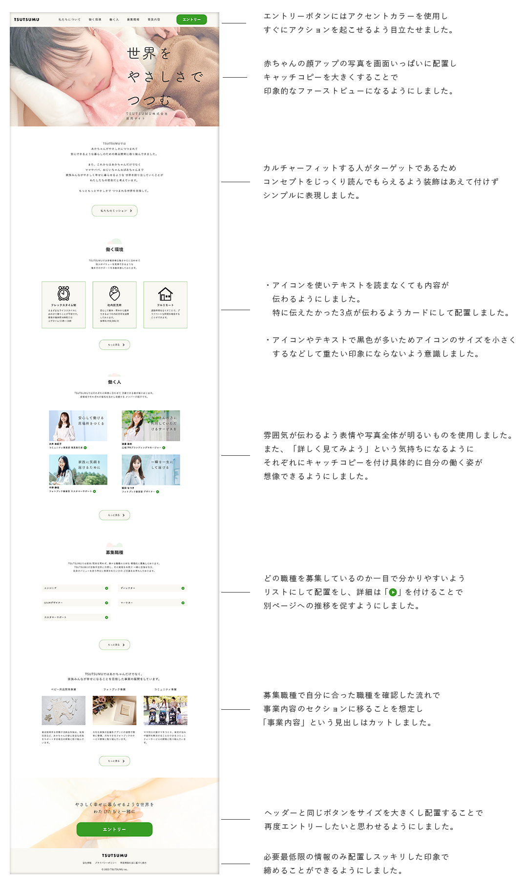 ・LPを通してエントリーをしてもらうこと(採用強化のためできるだけたくさんの応募が来て欲しいが、エントリーがあれば誰でもいいわけではなく、カルチャーフィットする方に応募してもらいたい)