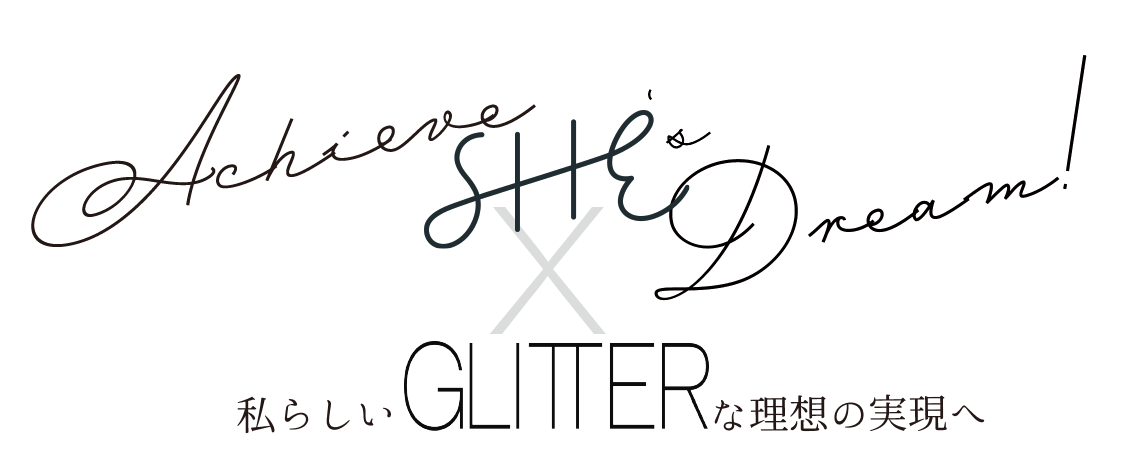 "SHEとGLITTERのコラボ企画「Achieve SHE's Dream!」の誌面(見開き1P予定)とWeb連載(年明け予定)に掲載予定ロゴを作成(自主制作)
