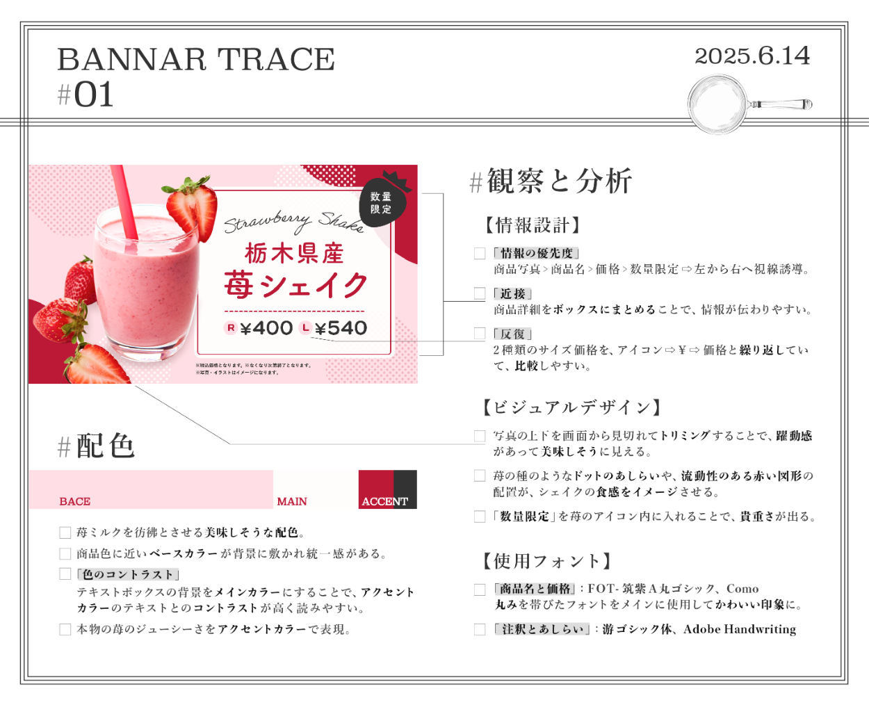 【デザインスクール課題】バナーをトレースして分析することで、デザインの意図を言語化。