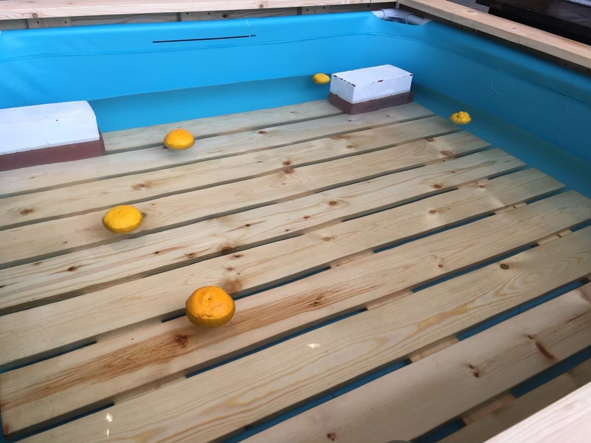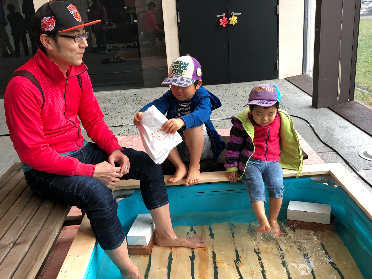 *足湯…ビニールプール、すのこ、保温ヒーターを使用して制作