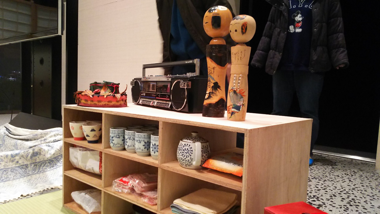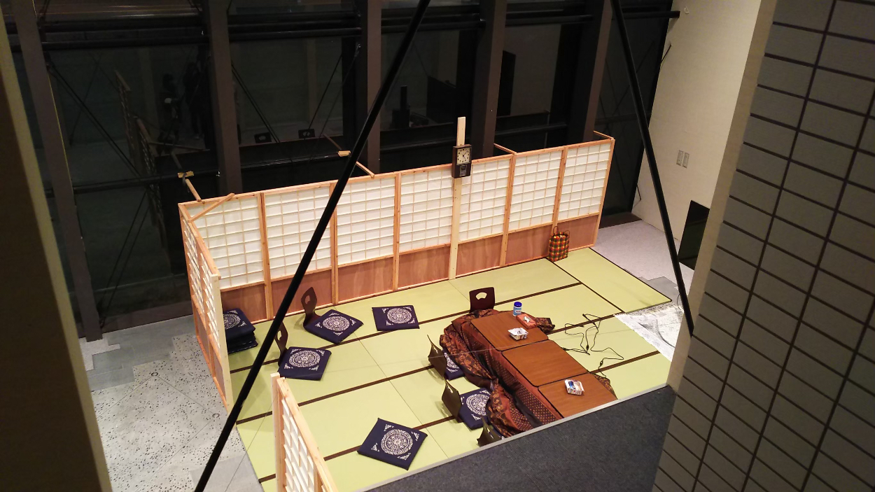 ・障子(手作り) ・畳 ・古い壁掛け時計やこけしなどの小道具